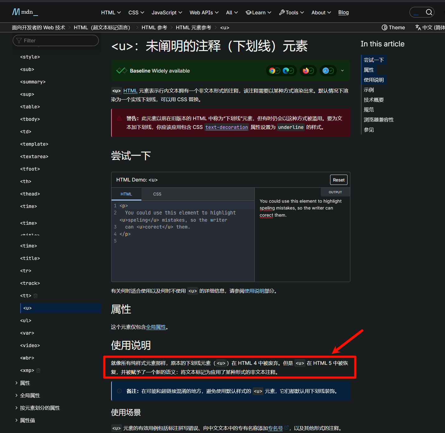 s 标签这东西,其实差点被弃用了,或者说已经被半弃用了,现在这东西的语义其实不是下划线了